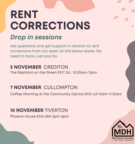 Tenants do not need to contact us, we will contact our tenants, but anyone who is worried about rent charges or wishes to speak to a member of our team please email rentcorrections@middevon.gov.uk or call 01884 255255.